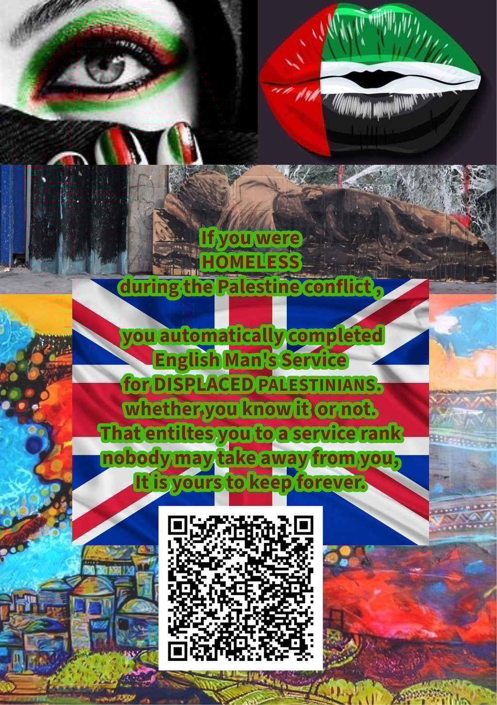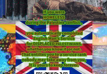 Homeless people supporting DISPLACED PALESTINIANS, providing crutches, hooks, threads, tight ropes and more varying assisted methods of mind frames employed and applied TO homeless situations to displaced individuals and families, fostering hope and resilience in challenging times.